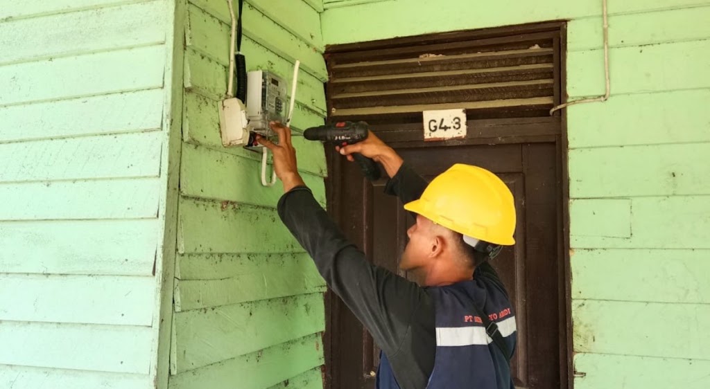 Petugas PLN sedang melakukan pemasangan kWh Prabayar di salah satu rumah warga Desa Beluh Mulyo (20/7). FOTODOKPLN